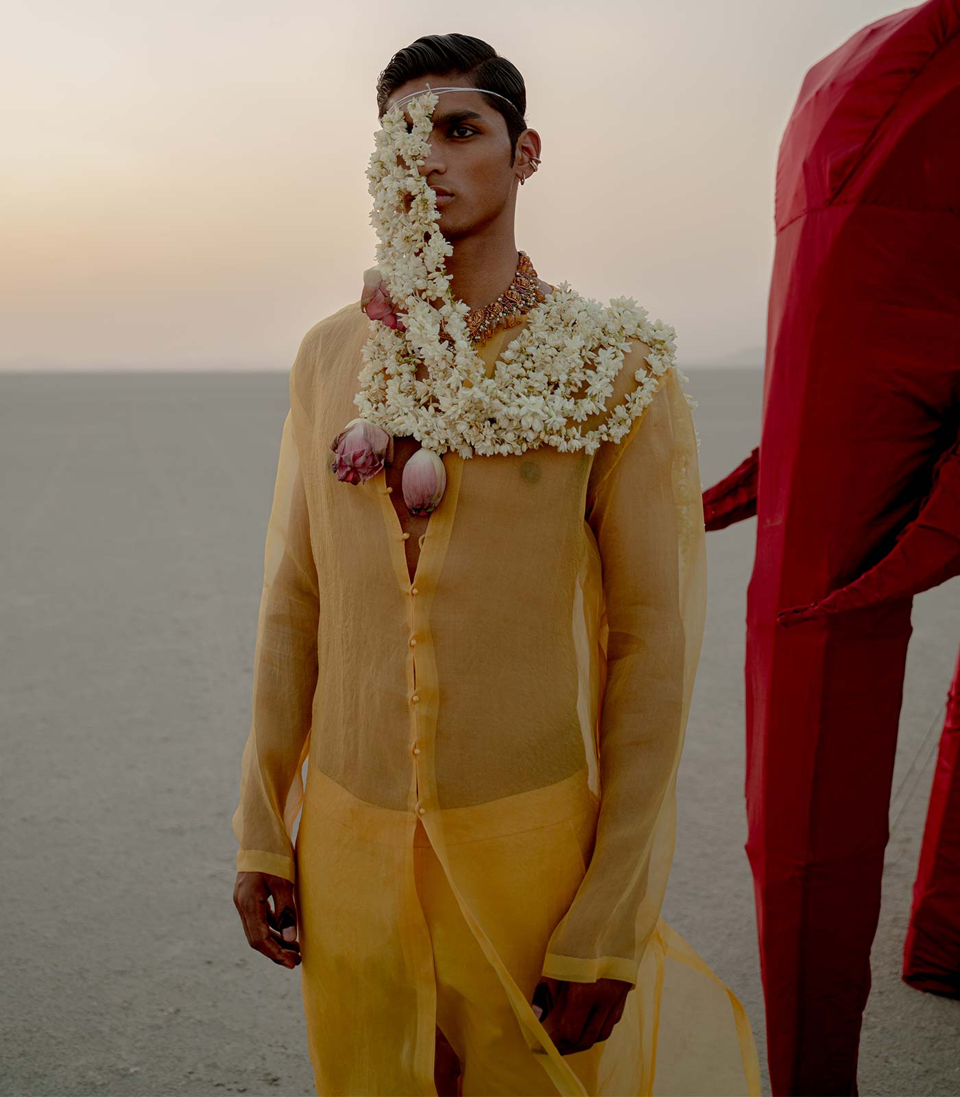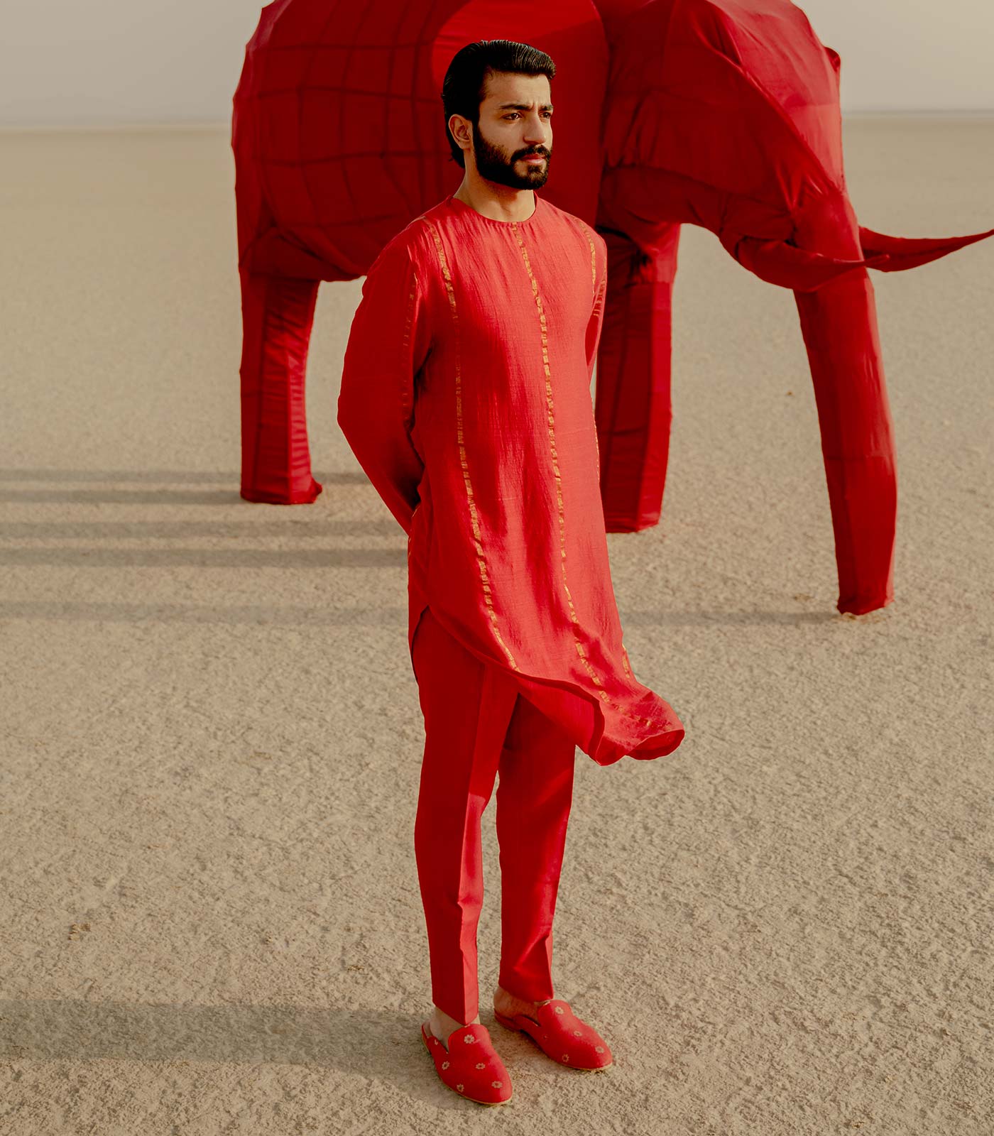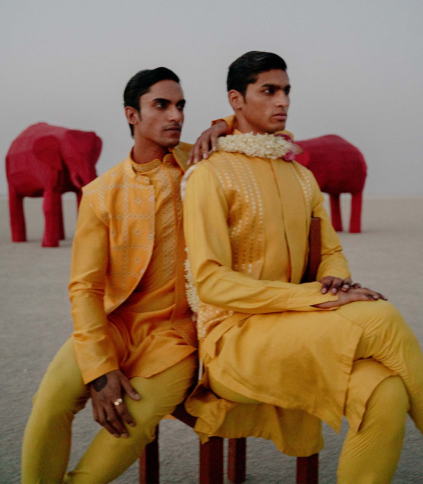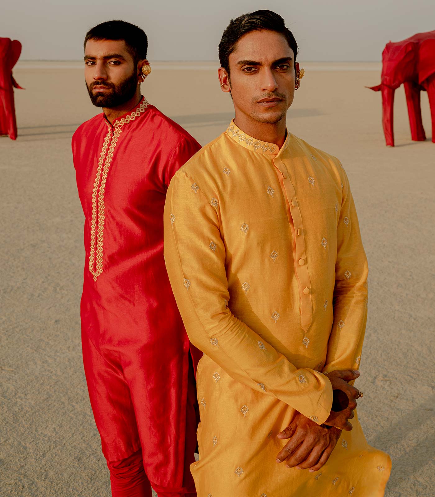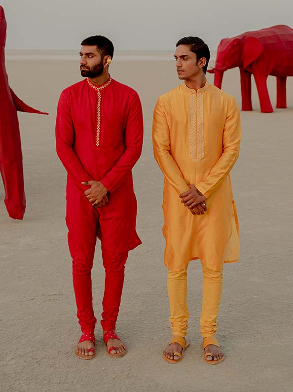 The warmest colours on the visual spectrum, ‘Laal’ and ‘Peela’ are significant of vibrant warmth and engaging energy.