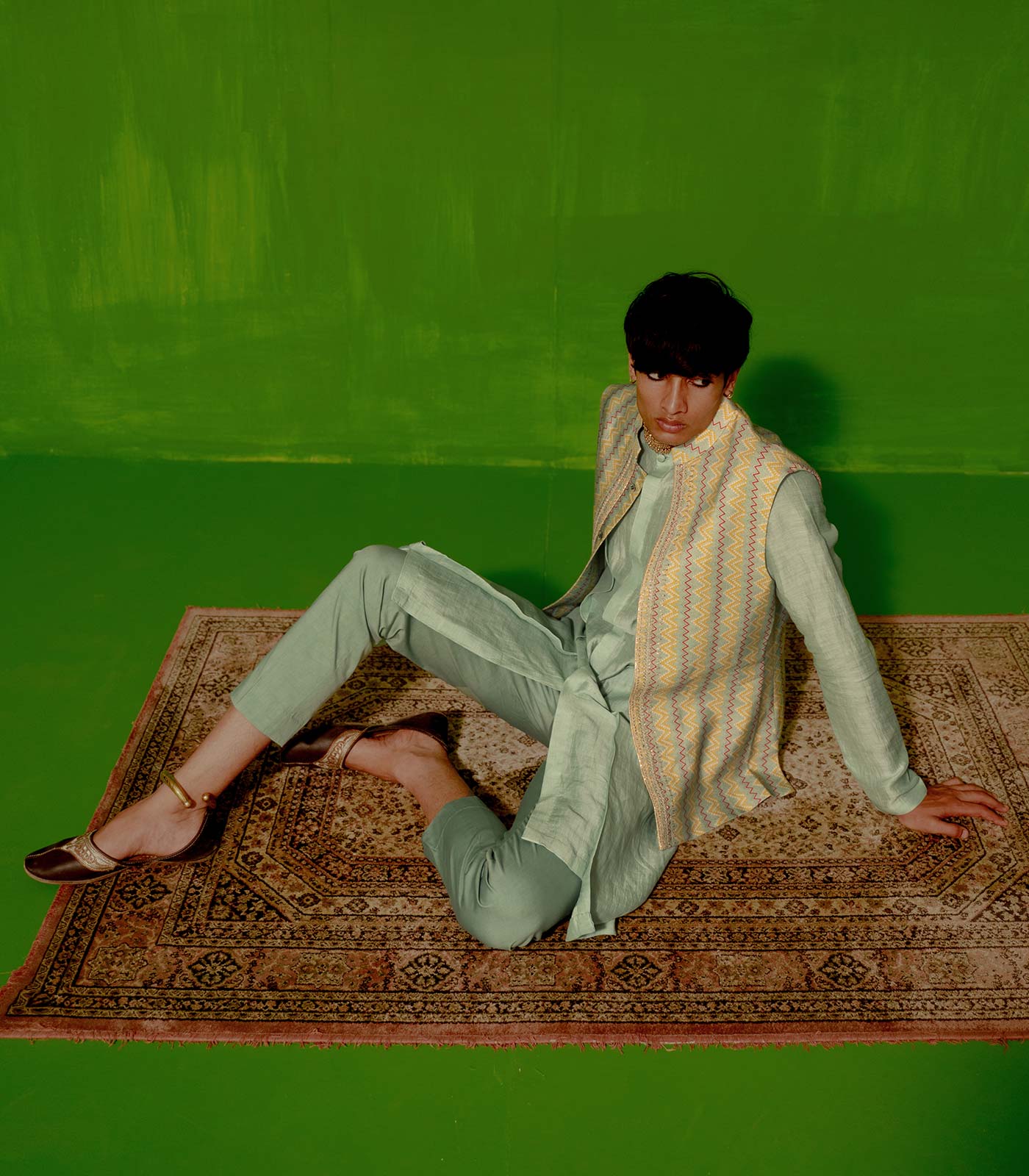 | Fabric | satin linen double layer kurta and cotton lycra puna pant |