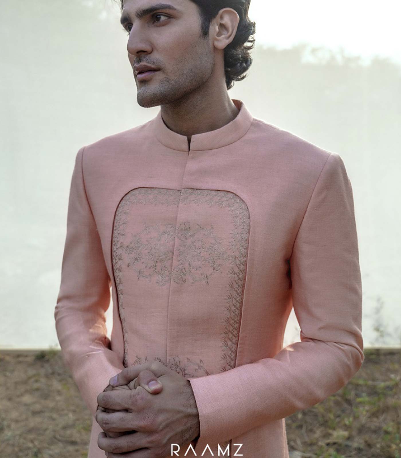 Just peachy arch indo-western with thar embroidery plum italian trouser