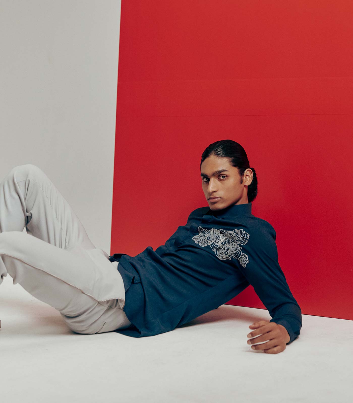 Midnight Blue Classic Full Sleeve Placement Embroidered Shirt.