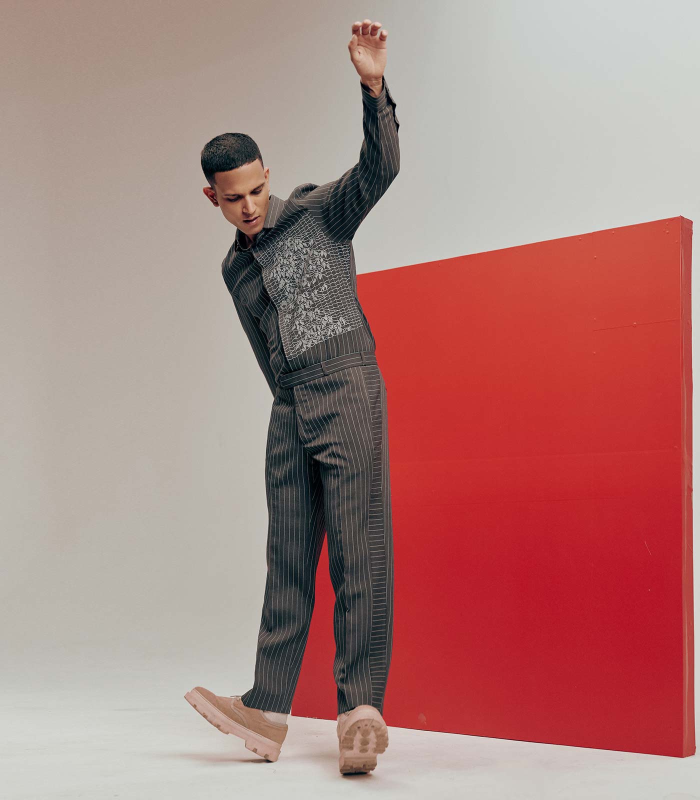 Smoke Grey Stripe Classic Full Sleeve Placement Embroidered Shirt.