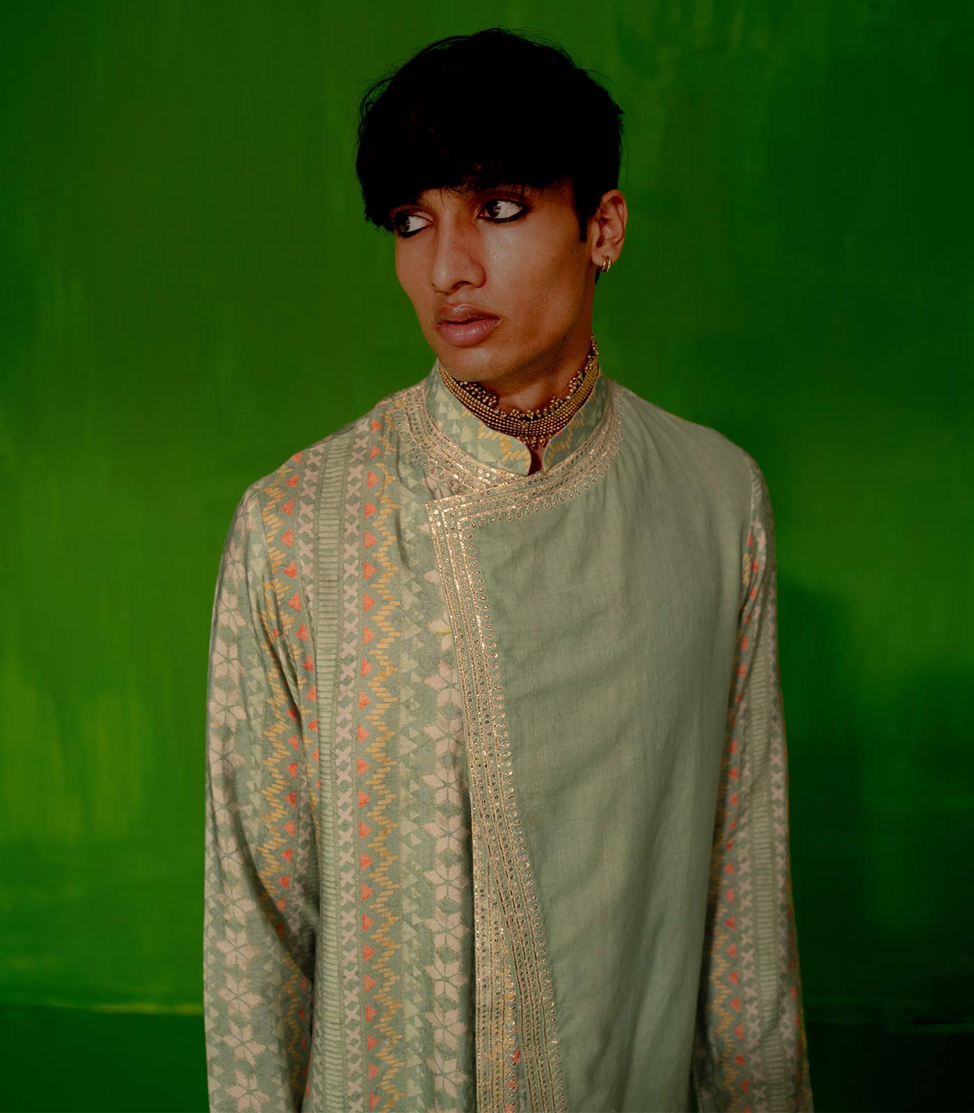Pool tusshar staple printed mul-double layer kurta with dori embroidery pool cotton lycra puna pant