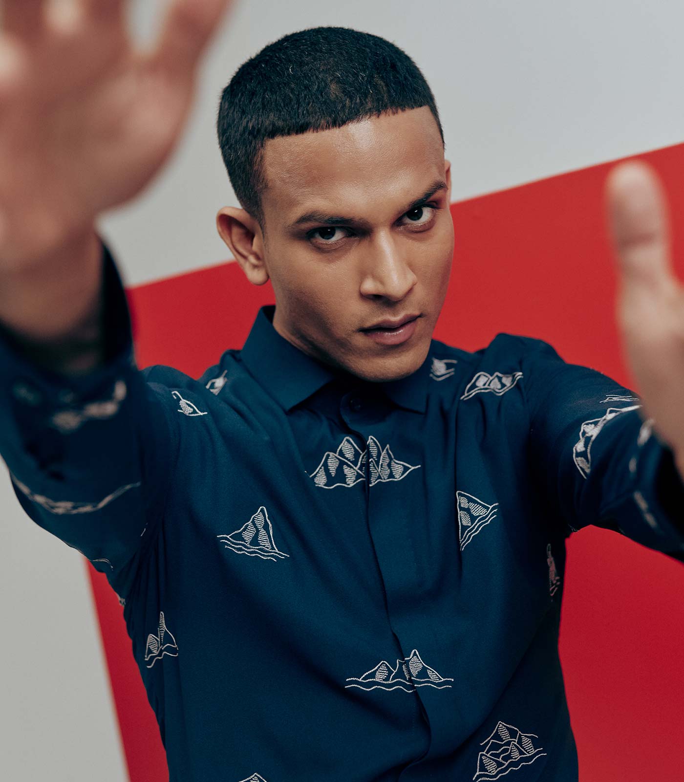 Yale Blue Classic Full Sleeve All-Over Embroidered Shirt.