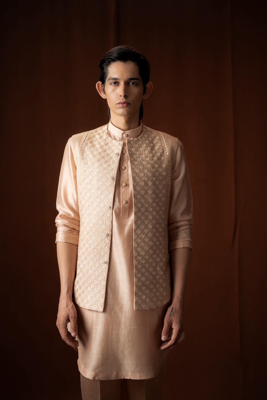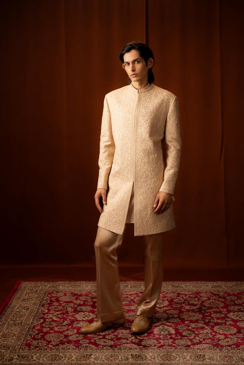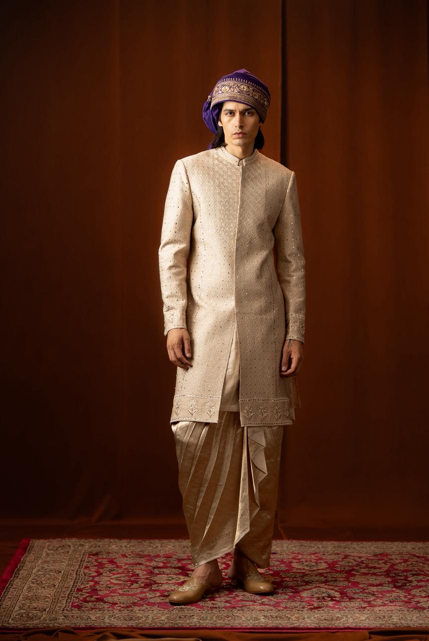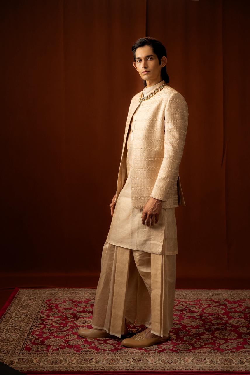 Inspired by The Oberoi UdaivilasThiscouture collection draws inspiration from the opulence and timeless grandeur of The Oberoi Udaivilas—a palace of romance, regal heritage, and architectural marvels nestled on the serene banks of Lake Pichola. Its majestic domes, intricate jaliwork, and frescoed interiors are reimagined through luxurious textiles, hand-embroidered motifs, and a color palette that mirrors the soft golden glow of dawn over Udaipur.Eachensemble captures the soul of royal India—where tradition gracefully meets modernity. Ornate bead embroidery, reshamthreadwork, and delicate gotapattiembellishments echo the palace’s exquisite carvings and lotus-adorned courtyards. Silhouettes are fluid yet structured, weaving narratives of old-world charm with contemporary elegance.Thiscollection is more than couture—it is an immersive journey into a world of quiet luxury, poetic detail, and refined celebration.